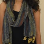 An alluring Kota Cotton stole with stripes in the rich deep palette, reminding one of many colors found in the rainforest.