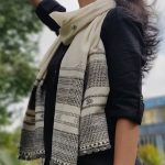 A statement of purity and elegance, this handwoven ivory stole is also handcrafted with pom-pom tassels.