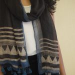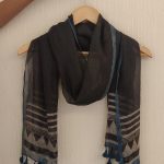 A must-have black stole finely interweaved to make a checkered pattern, finished with pretty blue tassels.